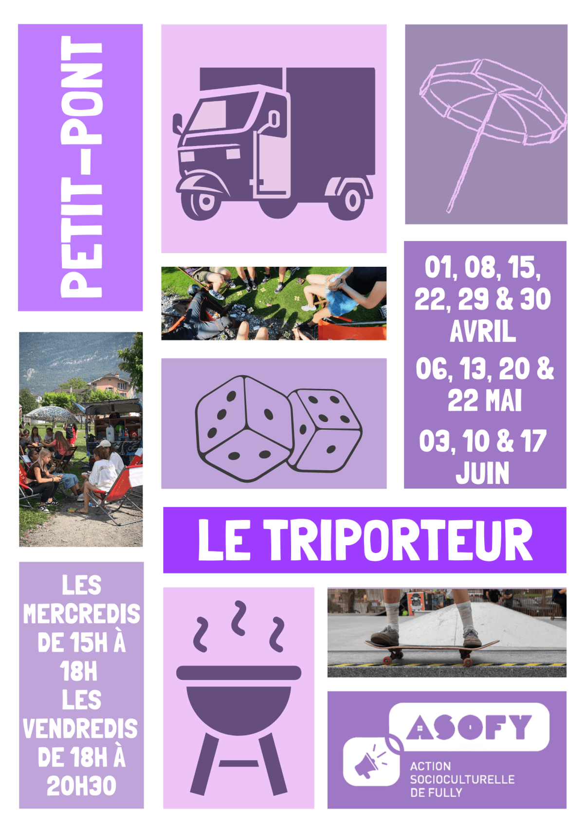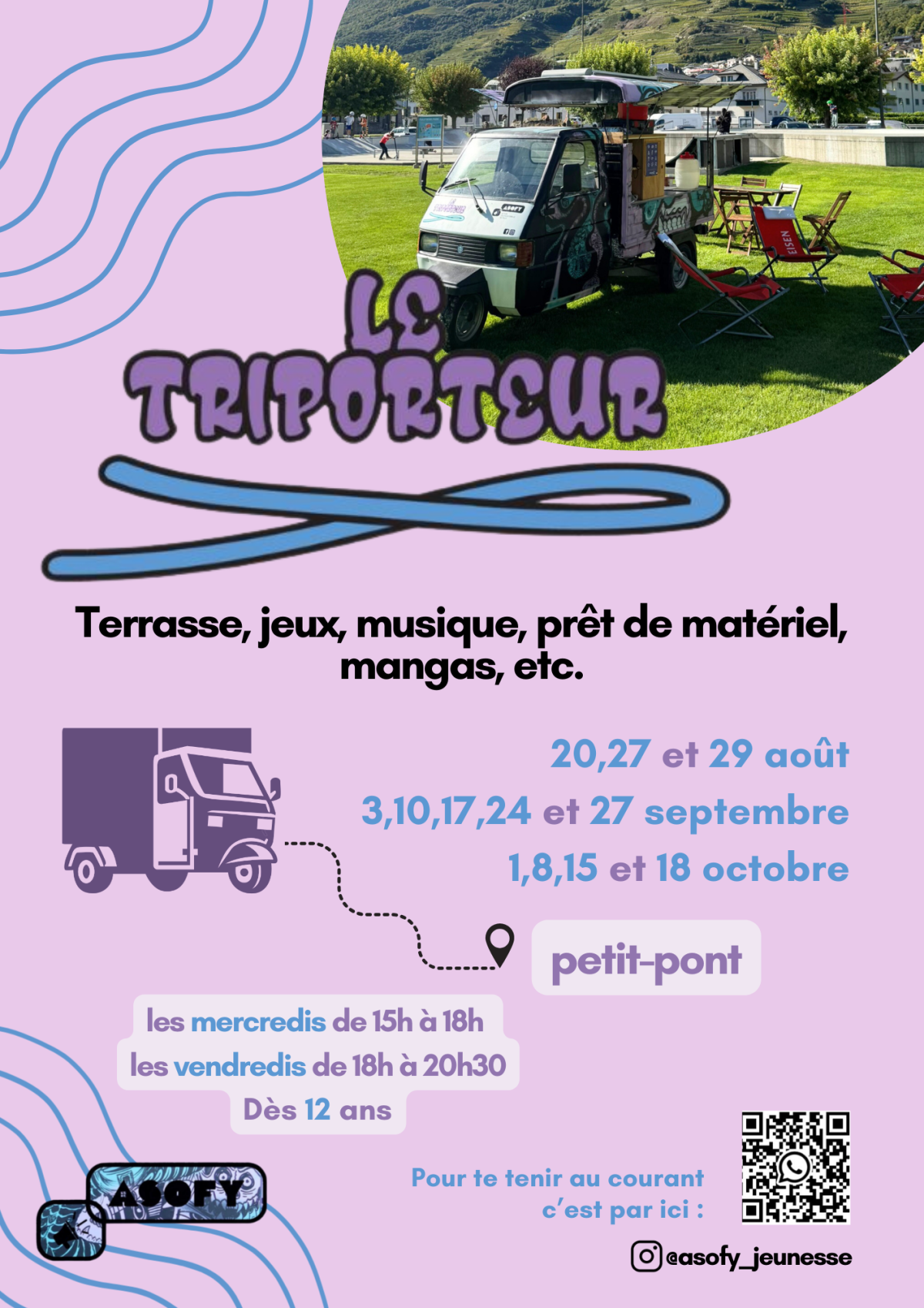 Le Triporteur offre un espace de rencontres bienveillant et chaleureux, doté d'une terrasse éphémère ainsi que de matériel ludique et culturel accessible gratuitement. L'équipe assure également un soutien dans les demandes de projets.