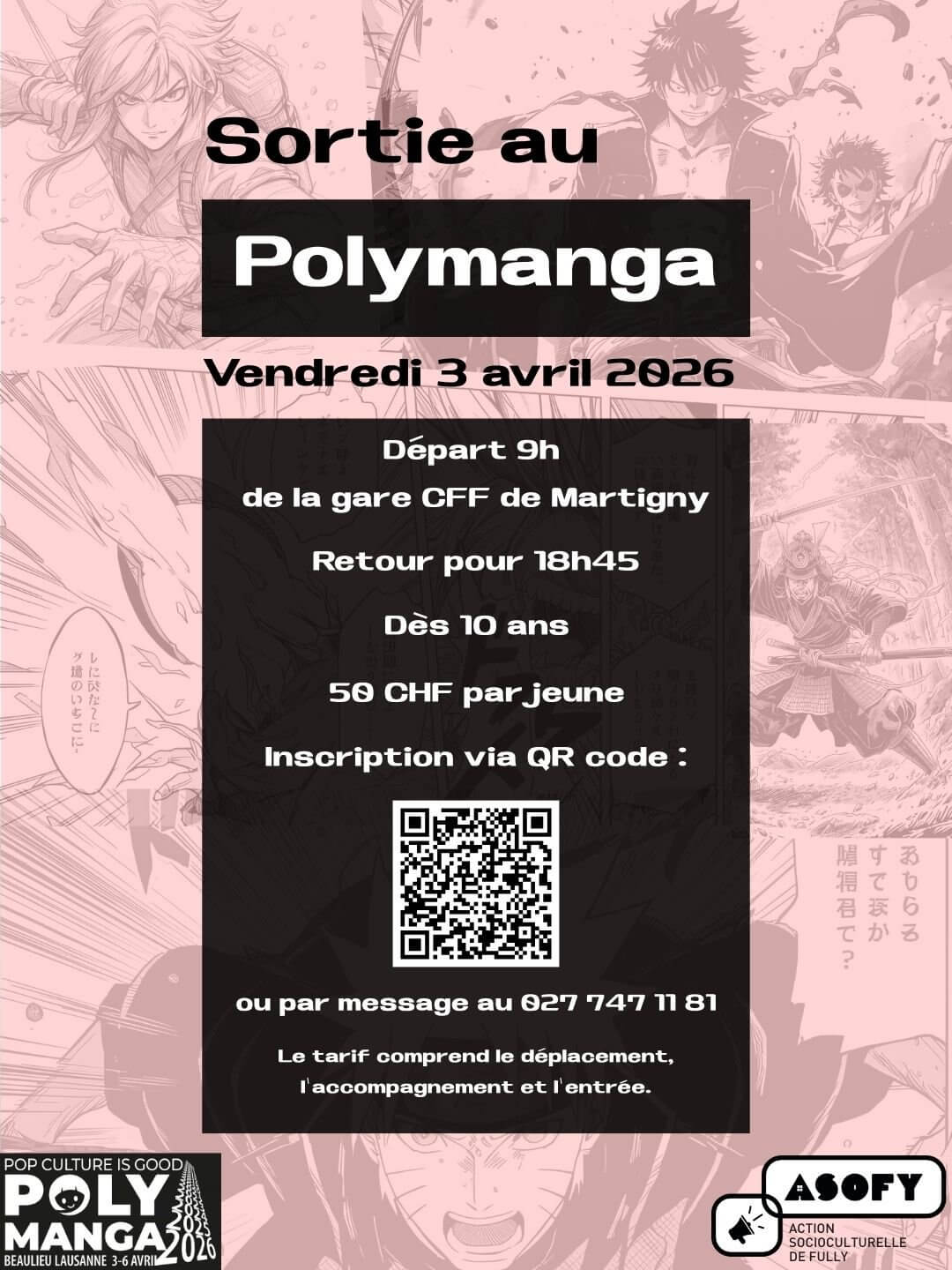 L'AsoFy propose une sortie à Lausanne, au festival Polymanga, le vendredi 3 avril 2026.